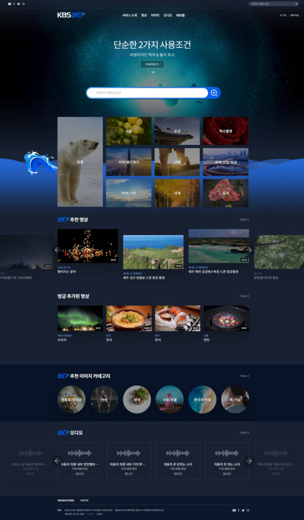 KBS, 영상 클립을 무료로 받아 가세요. 공공 스톡 콘텐츠 서비스‘KBS 바다’ 무료로 개방 – 지상파 최초, KBS 아카이브 콘텐츠를 클립화해 무료로 개방 – 6,000개 이상의 영상·이미지·오디오 콘텐츠 클립을 자유롭게 이용 가능 – 미디어를 활용하고 싶은 시청자, 콘텐츠가 필요한 이용자는 누구나 다운로드 KBS는 오늘(3일) 창사 49주년을 맞이하여 시청자를 위해 무료 공공 서비스 ‘KBS 바다’를 시작한다고 밝혔다.…
